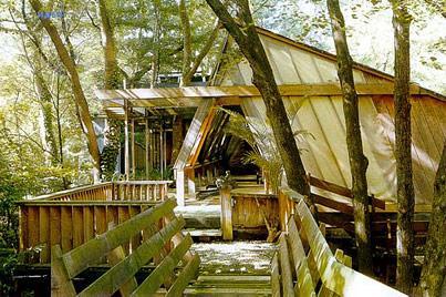 Творческим личностям, людям с развитым воображением претят современные градостроительные стандарты, им требуется индивидуальная среда обитания. Поэтому и появляются на земле дома удивительной, непривычной, подчас шокирующей архитектуры. С некоторыми из них мы вас познакомили ранее. Сегодня мы продолжаем рассказ о наиболее интересных реализованных проектах. Дом на деревеЧета Сьюзан и Ховард Камински, издатель и писательница, живут на Манхэттене и владеют элегантным поместьем на северо-западе Коннектикута. По признанию хозяина, он всегда хотел иметь дом на дереве. И однажды, осматривая окрестности Шерона в поисках чего-нибудь подходящего для подобной затеи, заприметил роскошный клен. Камински пригласили дизайнера Джона Римана, чтобы он наколдовал им что-то вроде домика Гэнзеля и Гретель. Балансируя в 20 метрах над землей, Риман соорудил в разветвлении клена платформу, а затем занялся стенами, окнами и дверями, собирая их из разнообразного строительного вторсырья. Теперь это чудо инженерного искусства и архитектуры служит жилищем восемь месяцев в году. Здесь очень уютно и спокойно, дом не качается даже при сильном ветре, уверяют хозяева. Лестница с поручнями из узких бревен ведет от земли на открытую террасу. В погожие дни они устраиваются здесь с чтением и письмом. Или просто оглядывают окрестности. По мнению хозяев, терраса особенно хороша весной и осенью, когда дерево заметно меняется день ото дня. Камински приятно сознавать свое пребывание здесь частью столетней биографии клена. Наблюдая жизнь этого дома с земли, их можно принять за древесных духов.