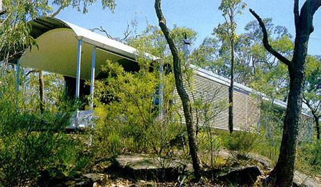 Дом-вагончикЭтот летний домик художника, место уединенной работы расположен в Болл-Истуэй-хаус в Гленори, Сидней (Австралия). Его автор - Гленн Меркат. Приподнятое над землей протяженное и узкое здание со сводчатой крышей из гофрированного металла похоже на вагончик, непонятно как оказавшийся в гуще сухого австралийского леса. Линейная структура постройки и ее конфигурация продиктованы климатическими условиями. Постановка на сваи обеспечивает лучшую вентиляцию. Изогнутая форма крыши мешает накапливаться листве. И ее широкие свесы создают тень, препятствуя перегреву здания. Стены облицованы серым рифленым металлом, отражающим яркие цвета австралийского леса.