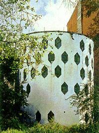 Дом-цилиндрЧтобы полюбоваться этим домом, не нужно отправляться в дальние страны. Собственный дом в Кривоарбатском переулке в Москве, построенный в 20-е годы прошлого века, спроектирован Константином Мельниковым. Постройка представляет собой сочетание двух вертикальных цилиндров (диаметром 10 м каждый и высотой 8 и 11 м соответственно), врезанных друг в друга на одну треть. Поверхности стен украшены лишь геометрическим узором из шестигранных проемов, придающим легкость конструкции и обеспечивающим нестандартное естественное освещение интерьера. Простая и вместе с тем необычная композиция призвана создать сложное и выразительное пространство, обеспечив уют и комфорт.