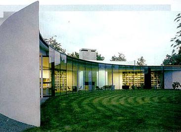 Дом-полумесяцЭтот собственный дом в Уилтшире (Великобритания) "сочинил" Кен Шаттлворт. Здание состоит из двух объемов и форме полумесяца; их соединяет галерея, в торцах которой расположены входы. Более высокий "полумесяц", обращенный на юго-восток, открывается в сад высоким стеклянным витражом. Его объем занимает просторная гостиная с кухней в нише. "Полумесяц" пониже, где находятся ванные и подсобное помещение, лишен окон - дневной свет проникает через зенитный фонарь. Небольшие комнаты резко контрастируют с огромным, плавно перетекающим пространством гостиной. Напротив дома находится цементный завод, что объясняет не только выбор основного строительного материала, но и отсутствие окон на уличном фасаде.