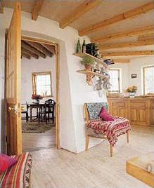 Дом-мельницаЖители туманного Альбиона решили, что для жилища вполне подойдет старая ветряная мельница. Обустроили мельницу с комфортом. Самой впечатляющей, "зрелищной" ее частью является башня. Замкнутый круг каменных стен и плавно развертывающаяся спираль бегущей вверх винтовой лестницы - эти символы характеризуют философскую концепцию бытия хозяев. Помещения первого этажа образуют две концентрические окружности. По внешнему периметру - кухня, санузел и хозяйственные помещения, в центре - проходная гостиная-столовая с камином, библиотекой, обеденным столом и живописными полотнами на стенах. Потолок по окружности симметрично перекрыт красивыми деревянными балками и обшит широкими стругаными досками. На втором этаже, куда ведет металлическая винтовая лестница, находится спальня. Работать в башне хочется реже, чем спать, поэтому рабочий кабинет хозяев расположен над спальней. А на самом верху - великолепная мансарда со смотровыми окнами, выходящими на все четыре стороны света. Светлые деревянные перекрытия потолка, полы, дверные полотна и оконные рамы гармонируют с оштукатуренными стенами теплых тонов - таков типичный облик уютного провинциального жилища. Подобное сочетание позволяет обставлять комнаты в стиле кантри.